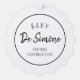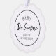 Envoyez une carte d'ornement pour annoncer votre grossesse à votre famille et à vos amis. Le design simple et moderne comprend une carte blanche avec typographie noire. Personnalisez avec votre nom de famille, la date d'arrivée du bébé sur le devant et un accueil de vacances personnel sur le dos.