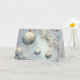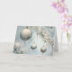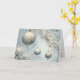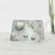 Elégant Bleu et Or Ornements de Noël Design - Carte de Noël Capturez l'élégance de la période des Fêtes avec cette carte de Noël exquise avec de magnifiques ornements bleus et or suspendus gracieusement des branches gelées. Les tons bleus doux et glacés associés à des touches dorées délicates créent une scène hivernale luxueuse qui rayonne de sophistication et de tranquillité. Parfait pour envoyer des salutations chaleureuses à vos amis, à votre famille ou à vos collègues, le design raffiné de cette carte donne vie à la beauté de la saison. L'intérieur contient un message d'accueil pré-écrit, mais vous pouvez le personnaliser pour le rendre encore plus significatif.