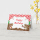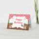 Une carte d'anniversaire d'ours chef cuisinier pour cette occasion spéciale. Le fond est à carreaux rouges et à pois marrons. Les mots peuvent être changés en vos propres détails