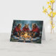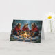 Une scène charmante de trois ours en chemises à flanelle confortables, rôties de guimauves autour d'un feu de camp crépitant au bord d'une rivière sous la douce lueur d'une forêt éclairée par la lune. Le texte intérieur peut être modifié.