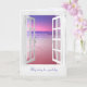fenêtre blanche ouverte avec violet et rose océan scène de lever du soleil pour penser à vous
