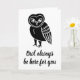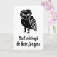 Cette douce carte de sympathie présente une illustration de hibou avec les mots "Owl be toujours ici pour toi" sur le devant. L'intérieur dit : "Je voulais que vous sachiez que je serai toujours là pour vous, à travers les bons et les mauvais moments" qui peut être enlevé ou customisé.
