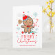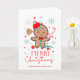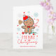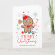 Une carte de voeux Homme Gingerbread Cookie avec un joli Noël Joyeux, des flocons de neige et un design sucre de canne.
