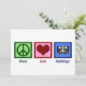 Un signe de paix, un cœur et une radio. Une carte adorable pour un radiologue. Cartes Paix Amour Radiologie.
