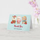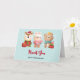 Carte de Noël avec une illustration mignonne mettant en vedette un lapin, un ours et un cerf tous habillés en tenue de fête. Adorable et fantaisiste.
