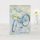 panier des marguerites blanches sur le vélo bleu avec l'arrière - plan texturisé pour l'anniversaire