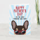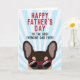 Frenchies, cette carte de fête des Pères bouledogue français fera la journée de votre papa. Le design présente une illustration d'un bouledogue français brun et fauve à l'air cool portant des lunettes de soleil rouges avec la mention "Joyeuse fête des Pères au meilleur papa Frenchie de tous les temps !" écrite sur le devant. L'intérieur de la carte indique "À papa, je t'aime plus que les friandises" mais peut être modifié selon vos souhaits.