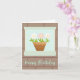 A unique Birthday card that features a print of my delicate handmade paper craft daisies in a pot that were punched out and cut from paper, two white and one pink. They sit on a house windowsill.