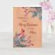 Joyeux Noël pour maman carte avec aquarelle d'hiver feuillage, cardinal, motif de papier rustique et verset réfléchi.