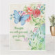 Cette carte modifiable présente une aquarelle illustrant un papillon, des fleurs et un message modifiable sur la gauche. A l'intérieur, il y a un message. Le texte à l'avant et à l'intérieur est modifiable, alors allez-y et changez les mots ainsi que le style de police, la taille et la couleur. Les couleurs arrière - plans à l'intérieur et à l'arrière peuvent également être modifiées. Cette carte polyvalente peut être utilisée pour les anniversaires, la sympathie, merci, les départs à la retraite, etc. Changez simplement les mots pour correspondre à l'occasion. Profitez de votre nouvelle carte Editable Blue Butterfly and Flowers Card!