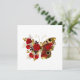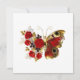 Papillon de fleurs aux yeux de paon rouge à aile texturée rouge, décoré de composition de roses rouges, artistiquement peints avec des tiges dorées et feuilles sur arrière - plan blanc.