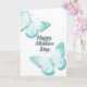 Un papillon en haut et en bas de l'image avec le message « Bonne fête des mères » au milieu, le tout en bleu sarcelle sur fond blanc par martinspixs.