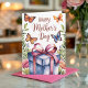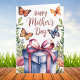 Ce design est complet avec une illustration aquarelle de papillons, de verdure, de fleurs et d'un cadeau. Les mots "Joyeuse Fête des mères" apparaissent également sur le devant de la carte. À l'intérieur de la carte, il est écrit : "Maman, tu es mon papillon - gracieux, fort et plein d'amour". Vous pouvez remplacer ceci par votre propre dicton si vous le souhaitez. Profitez-en !