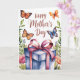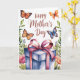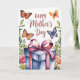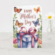Ce design est complété par une illustration aquarelle de papillons, de verdure, de fleurs et d'un cadeau. Les mots "Joyeuse fête des mères" apparaissent également sur le devant de la carte. À l'intérieur de la carte, il est écrit : "Maman, tu es mon papillon - gracieux, fort et plein d'amour". Vous pouvez remplacer ceci par votre propre dicton si vous le souhaitez. Profitez-en !