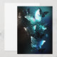 Papillons lumineux de nuit à la menthe sur fond abstrait noir.