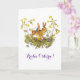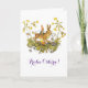 Carte de Pâques avec une illustration vintage adorable d'Else Wenz Vietor. Fleurs printanières, le lapin de Pâques, des œufs de Pâques colorés et un elfe des bois créent un thème de Pâques ou de printemps fantaisiste !