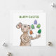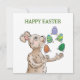 Le lapin de Pâques jongle les oeufs de Pâques tandis que le petit poulet est le public.