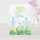 Les portes du ciel sont ouvertes et le chemin fleuri coloré est large dans cette belle carte de Pâques Il est ressuscité à l'aquarelle. Une croix bleue s'élève vers le ciel au-dessus du panneau d'entrée qui indique Il est ressuscité et une colombe aux ailes déployées s'élève dans les airs.