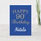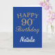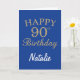 Parties scintillant bleue et or 90e Anniversaire Carte avec nom personnalisé. Pour plus de personnalisation, cliquez sur le bouton "Customiser" et utilisez notre outil de conception pour modifier ce modèle.