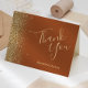 Cette élégante carte de remerciements mariage moderne est ornée d'une bordure de parties scintillant en faux or sur un arrière - plan en terre cuite. Le texte personnalisable combine les mots "Merci" en écriture manuscrite couleur or et les noms de la mariée et du marié en caractères italiques.