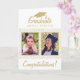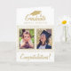 Motif de Parties scintillant d'or Félicitations Graduate 2 Carte photo. Motif de parties scintillant en faux or tendance. Personnalisez avec 2 photos - vous pouvez utiliser des photos anciennes et nouvelles. Ajoutez le nom du diplômé sur le devant et le message à l'intérieur de la carte ou effacez-le.