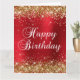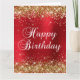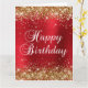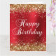 Parties scintillant d'or brillant au format vertical sur un art numérique d'un à faux rose rouge sombre. Vous pouvez modifier la couleur du graphique texte Happy Birthday ou le supprimer et le remplacer par du texte du système. Vous pouvez également supprimer le message texte intérieur et la signature si vous préférez écrire à la main votre propre message de célébration d'anniversaire.