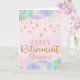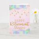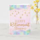 Une carte de retraite glamour. Cette belle carte Glam présente des étoiles dorées et des ballons irisés pastel. Une belle carte élégante pour féliciter un employé, une famille ou un ami qui prend sa retraite. Personnalisez avec un nom et ajoutez ou modifiez le message à l'intérieur duquel se lit actuellement "Bonne retraite. Je vous souhaite le meilleur de votre nouvelle vie à la retraite."