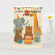 Party animals celebrating a birthday. Customize number, name, message, and signature.