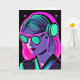 Il suffit d'envoyer un peu d'amour à un ami ou un membre de la famille. Cool psychédélique IA art avec une fille noire, turquoise et rose artsy dans les écouteurs écouter de la musique.