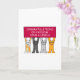 Quatre chats caricaturaux brandissant une pancarte couleur cerise qui dit "Félicitations de passer vos niveaux A".
