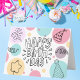 Célébrez dans le style avec cette carte d'anniversaire ludique avec un design de doodle moderne dans des couleurs pastel douces. L'illustration joyeuse combine des cercles géométriques à la menthe, roses et jaunes avec des éléments dessinés à la main comme des confettis, des étoiles et des casquettes de fête. La typographie fantaisiste fait apparaître "Joyeux Anniversaire" contre l'arrière - plan blanc propre. Parfait pour les anniversaires de tous âges, cette carte offre un équilibre parfait entre le plaisir et le raffinement avec son design contemporain et sa palette de couleurs douces.