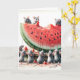 Les souris rassemblées autour d'un gros morceau de pastèque grignotant sur le fruit juteux Texte peut être changé.