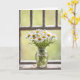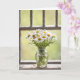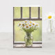 Bouquet de marguerite blanche dans vieille fenêtre en bois pour anniversaire. Le texte est modifiable.