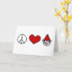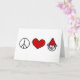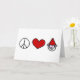 Comprend un dessin animé amusant d'un signe de paix, d'un coeur rouge et d'un gnome avec un casquette rouge.