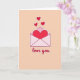 This card features a soothing peach background with a light pink envelope centered and opened to reveal a bright red heart, like a sweet note just shared 🥰. Three smaller red hearts float upward above the envelope, suggesting a message lifting into the air with caring intent ❤️. Each heart and the envelope are edged with a thin white outline that gives the shapes a neat, sticker-like look. Below the illustration, the words “love you” sit near the bottom in red, written in a flowing cursive style that matches the romantic theme. The soft pink and red palette creates a cozy, affectionate mood, as if the sender is leaning in close through the artwork. Gentle highlights on the hearts add a slight shine, making them feel rounded rather than flat. The overall layout is centered and balanced, with the envelope in the middle and the rising hearts forming a small arc against the peach backdrop.