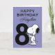 Célébrez l'anniversaire de votre enfant avec cette carte Snoopy super mignonne. Personnalisez avec le nom et l'âge de votre enfant.