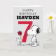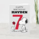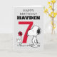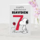 Célébrez l'anniversaire de votre enfant avec cette carte super mignonne Snoopy et Woodstock. Personnalisez avec le nom et l'âge de votre enfant.