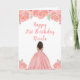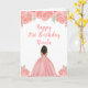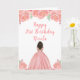 Cette carte d'anniversaire présente des fleurs florales roses faux parties scintillant et une belle princesse à la peau foncée et une robe élégante. C'est parfait pour une fête d'anniversaire.