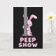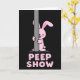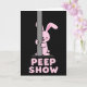 This card features a pastel pink bunny-like character 🐰 with rounded shapes, peeking shyly from behind a tall, smooth gray pole as if teasing a friend just out of view. One large, bright eye looks sideways with a tender, flirty glance, and a small blush on the cheek adds a cozy, affectionate touch. A tiny tongue peeks out, turning the pose into a gentle joke, while the little paws cling to the pole like it’s part of a peekaboo moment. The background is a wide, solid black field that makes the pink figure and gray pole stand out sharply, like a spotlight on a private exchange. Near the bottom, large pink letters sit centered and low on the page, matching the bunny’s color with a lightly speckled, candy-like texture. The text is arranged in a strong, all-caps style and reads as a cheeky pun that pairs with the bunny’s sideways peek, giving the scene a friendly, slightly romantic wink 🌷. The pole runs vertically along the right side while the bunny leans from behind it, leaving most of the black space open around them.