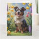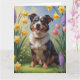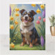 Un chien joyeux est assis paisiblement sur une herbe verte luxuriante, entouré de fleurs printanières colorées sous un ciel bleu doux. Cette peinture numérique à l'huile capture un moment serein avec des coups de pinceau expressifs, des couleurs chaudes et un sentiment de joie douce.