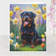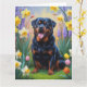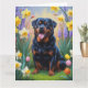 Carte Peinture de fleurs de printemps de chien Rottweile