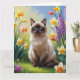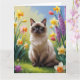 Carte Peinture de fleurs printanières de chat siamois