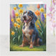 Un chien joyeux est assis paisiblement sur une herbe verte luxuriante, entouré de floraisons printanières colorées sous un ciel bleu doux. Cette peinture numérique à l'huile capture un moment serein avec des coups de pinceau expressifs, des couleurs chaudes et un sentiment de joie douce.