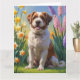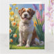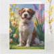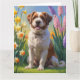 Un chien joyeux est assis paisiblement sur une herbe verte luxuriante, entouré de fleurs printanières colorées sous un ciel bleu doux. Cette peinture numérique à l'huile capture un moment serein avec des coups de pinceau expressifs, des couleurs chaudes et un sentiment de joie douce.