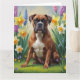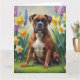 Carte Peinture de fleurs printanières de chien Boxer