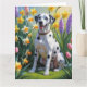 Carte Peinture de fleurs printanières de chien dalmate