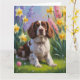 Carte Peinture de fleurs printanières de chien épagneul