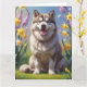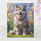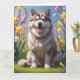 Carte Peinture de fleurs printanières de chien Malamute