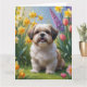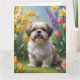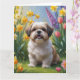 Carte Peinture de fleurs printanières de chien Shih Tzu