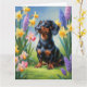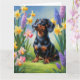 Un chien joyeux est assis paisiblement sur une herbe verte luxuriante, entouré de floraisons printanières colorées sous un ciel bleu doux. Cette peinture numérique à l'huile capture un moment serein avec des coups de pinceau expressifs, des couleurs chaudes et un sentiment de joie douce.